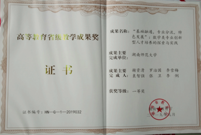 近五年,学院为国家输送本科生1400余人;保研学生200余人。为拓展人才培养模式,学院持续用好“学科竞赛”这个育人点,通过学科竞赛带动学生进一步强化学习、研究、创新。学院组织大学生数学建模竞赛、大学生数学竞赛;推进“卓越教师培养工程”;“未来教育家”竞赛、“我是未来名师”片段教学比赛、组织全国大学生统计建模竞赛、全国大学生计算机程序设计竞赛等教学和学科竞赛等。2019年,学院以“基础融通,专业分流,特色发展:数学类专业创新型人才培养的探索与实践”为成果名称获得“湖南省高等教育教学成果奖”一等奖。近年来,学院坚持以师范教育为核心,凝聚学工、师资、校友三方力量,促进数学创新型人才的培养,设立“麓山数学教育论坛”;此外,面向数学专业有继续深造意愿和相应实力的本科生选拔人才,开设天问班,自2021年起响应学校人才创新培养新方案,单独选拔一批本科生进入世承书院进行小班制、导师制培养。同时,学院着力打造数学、统计、信息、数据科学深度融合的前沿复合型人才培养,培养具备扎实应用数学理论基础和卓越实践动手能力的精英人才,实现“数学智能”与“计算效能”的完美结合。创新性地构建了“三能提升·三位一体·四维融合”的“三三四”卓越人才培养模式。历届优秀学生成功保送至中科院、南开大学、武汉大学、厦门大学、中山大学等国内顶级高校攻读硕士,奠定高精尖科研之路;同时,毕业生强大的数理功底和计算能力,使其成为市场上各科技公司算法设计、数据处理及核心软件开发岗位的抢手人才。